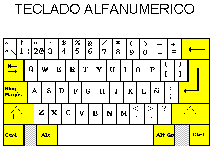 Aquí están todas las letras, números, símbolos y signos de puntuación. Estas teclas se encuentran normalmente en una máquina de escribir.